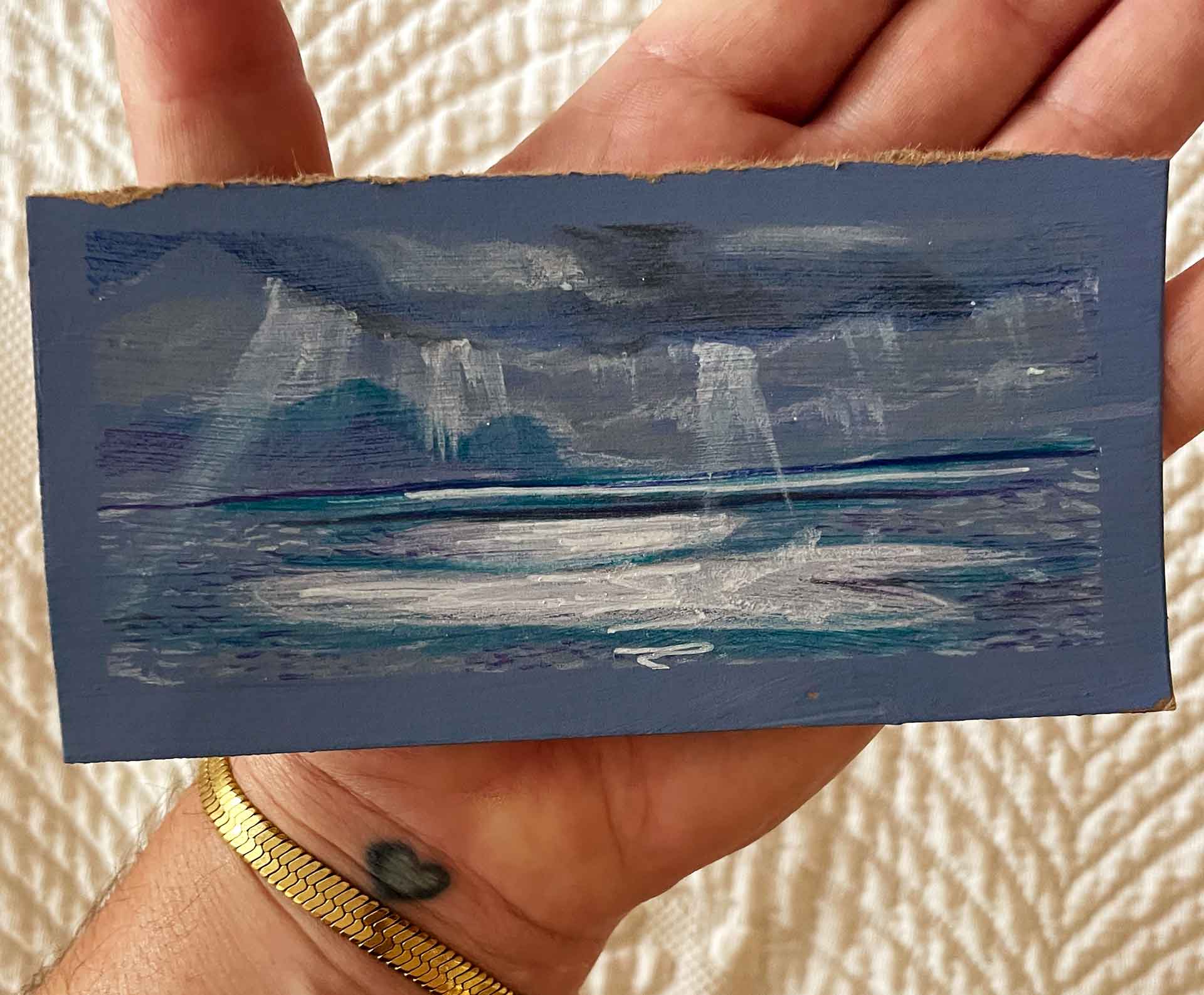 Important: This artwork is unique and will never be made into prints. Artwork is unvarnished and the paper surrounding the artwork may contain blemishes or marks as it was created on location. The nature of its creation means the artwork may need flattening or adhering to a surface before framing. Or you can just leave it ‘au naturel’.